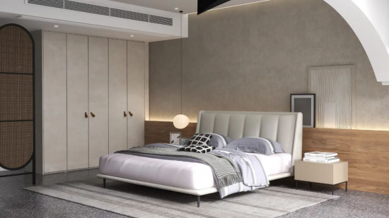 静谧祥和的卧室空间,CBD家居·智慧 | Z093软床的米白带来舒缓的观感体验,别具浪漫风情,竖纹拉扣呈现床屏的天堂在线影视免费观看美感 在线影视,恰到好处的角度设置,靠感更舒适, 。